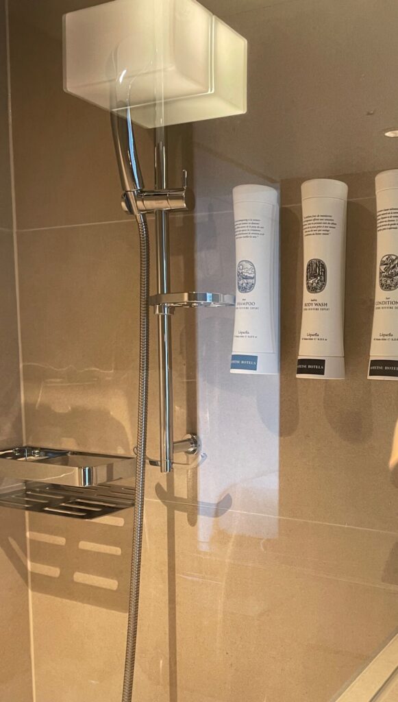 シャワー室と完全に別なのがよいです。この右側に個室内に小さな洗面台もありました。