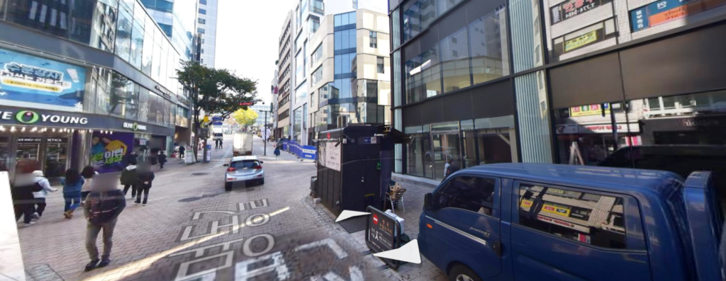 ホテル正面から左手を見るとこんな感じ。奥に真っすぐ行くとロッテ百貨店が見えます。