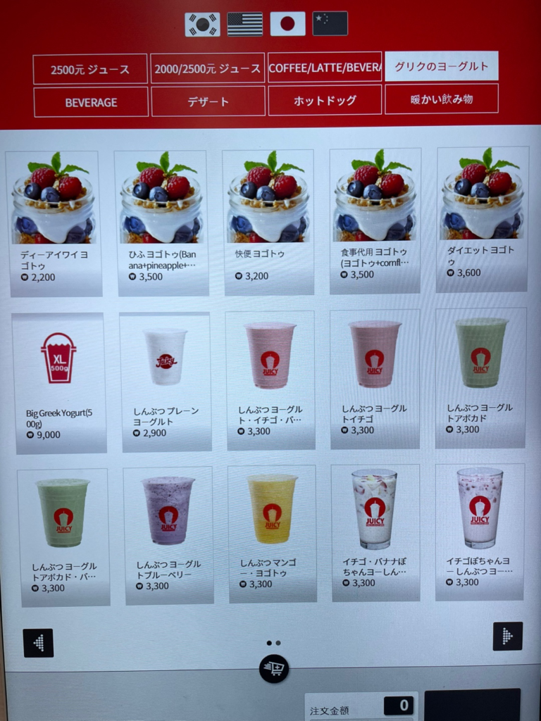 この新村店では「グリークヨーグルト」も販売していました。グリークヨーグルトは、どのjuicy店舗でも販売しているわけではないそうです。