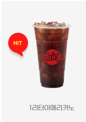 韓国のカフェを代表するメニューの「アメリカーノ」はJUICYでも買えます。なんと1リットルアメリカーノもあります。
