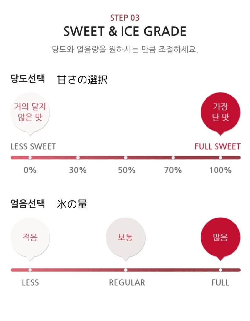 韓国では「少なめ」「ふつう」「多め」の3段階から選べます。
