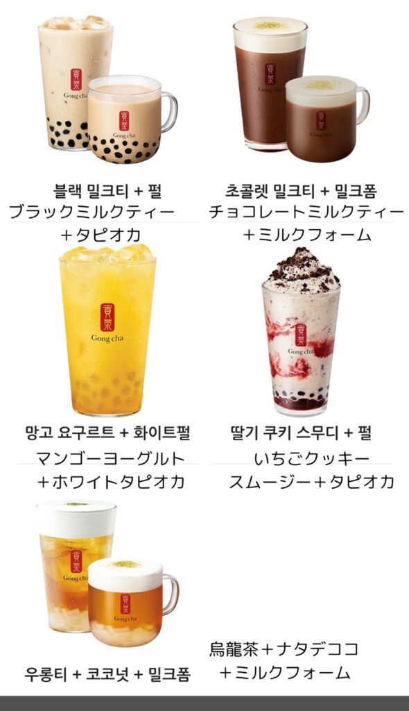 (引用元ゴンチャジャパン公式サイトGong cha Japan|ゴンチャ ジャパン|貢茶 Japan | 台湾茶 | アジアン ティー カフェ、ゴンチャコリア公式サイト공차 (gong-cha.co.kr))