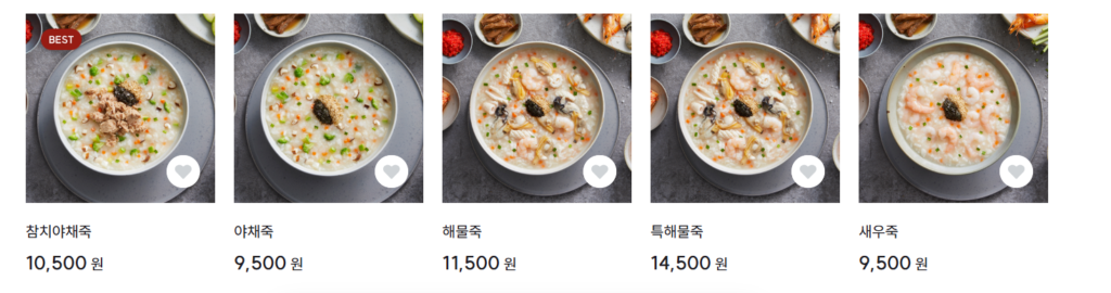 他にも牛肉わかめ粥、プルコギタコ粥など色々あります。