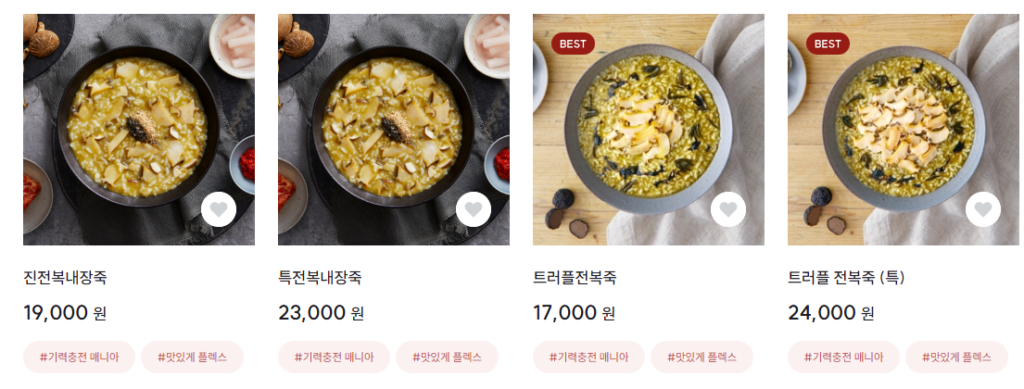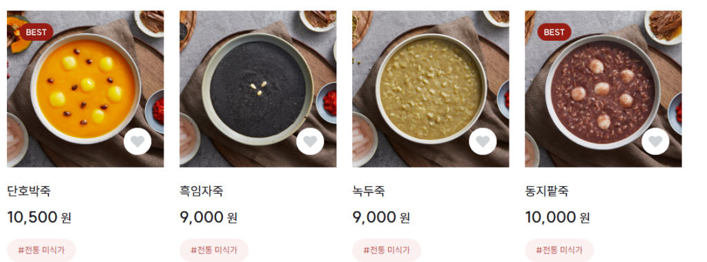 緑豆粥、BESTが付いているのは「冬至小豆粥」。お汁粉みたいな見た目ですが、おしるこのように甘くないです。日本では当時にかぼちゃを食べますが、韓国の冬至の時には小豆粥を食べる風習があります。