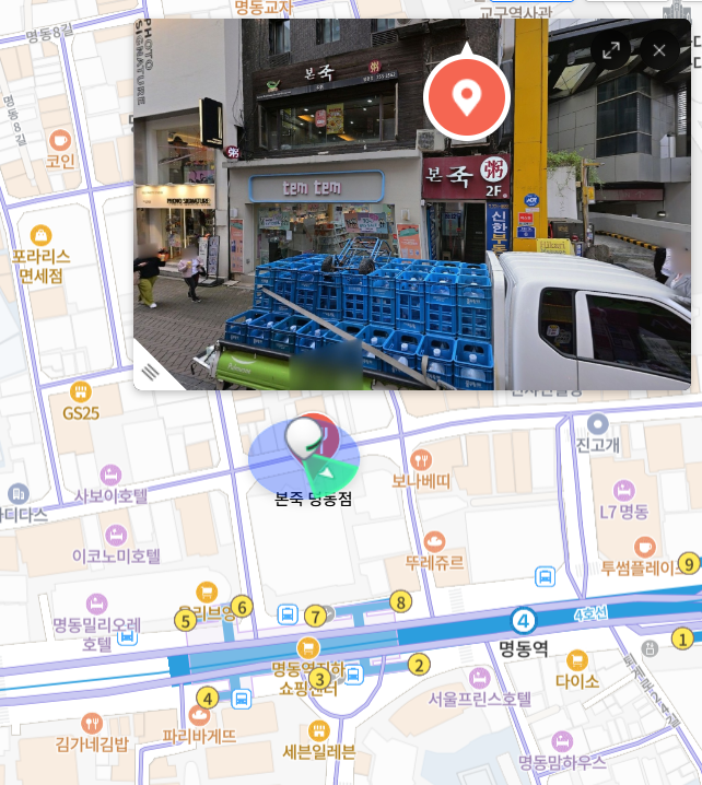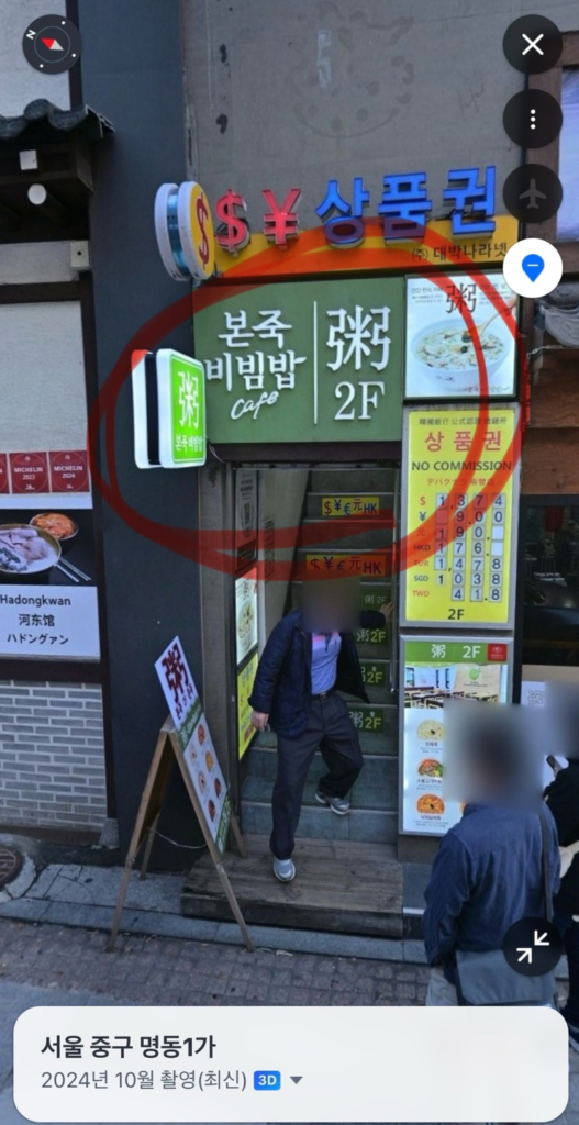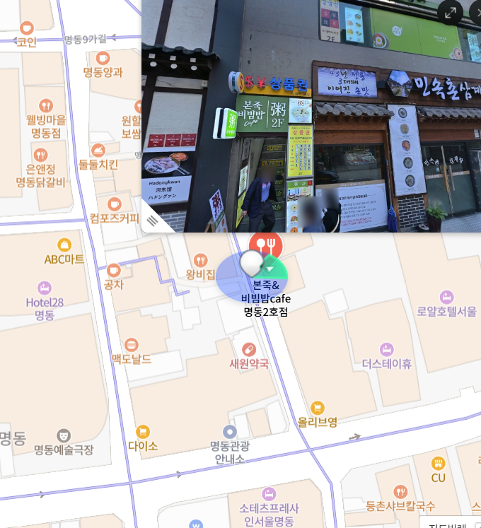 明洞駅6番出口から。ビルの階段上がった2階です。서울 중구 명동8가길 6 2층