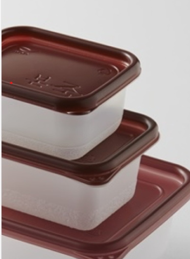 お粥なので汁が漏れるか心配かもしれませんが大丈夫。このようなタッパーに入れてくれます。(お粥のみ、顔はついていません)