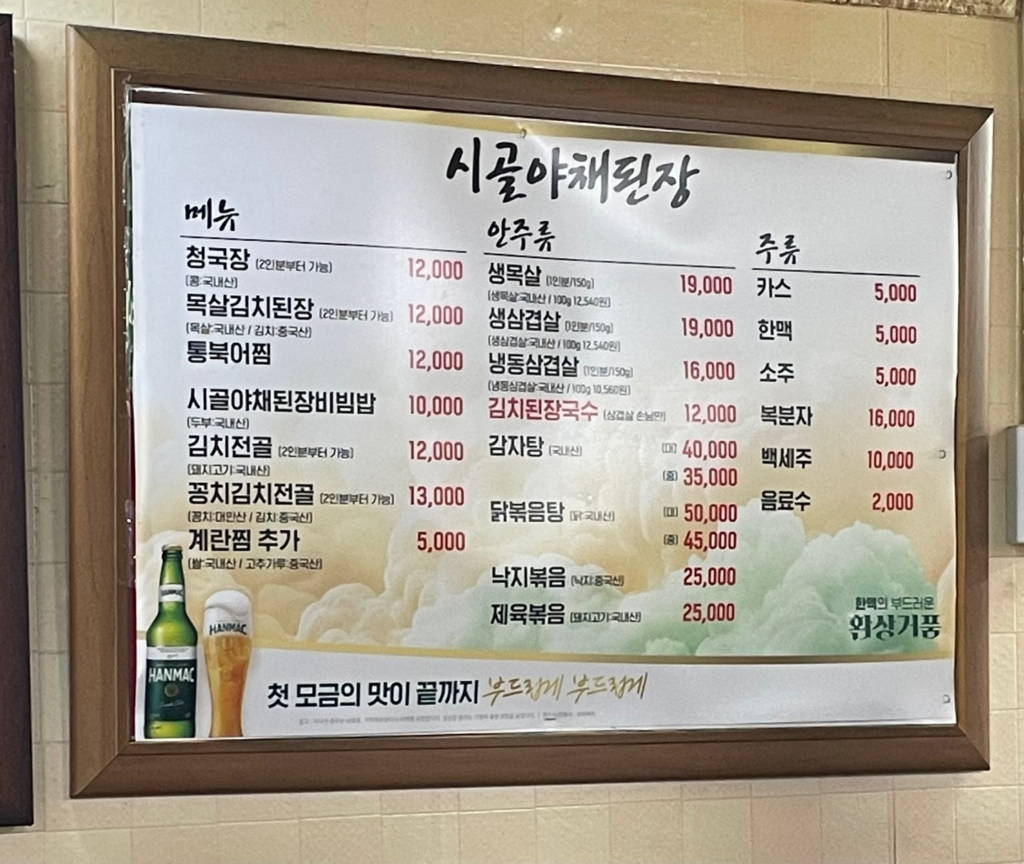 お店の名前は「田舎野菜テンジャン」(시골야채된장)