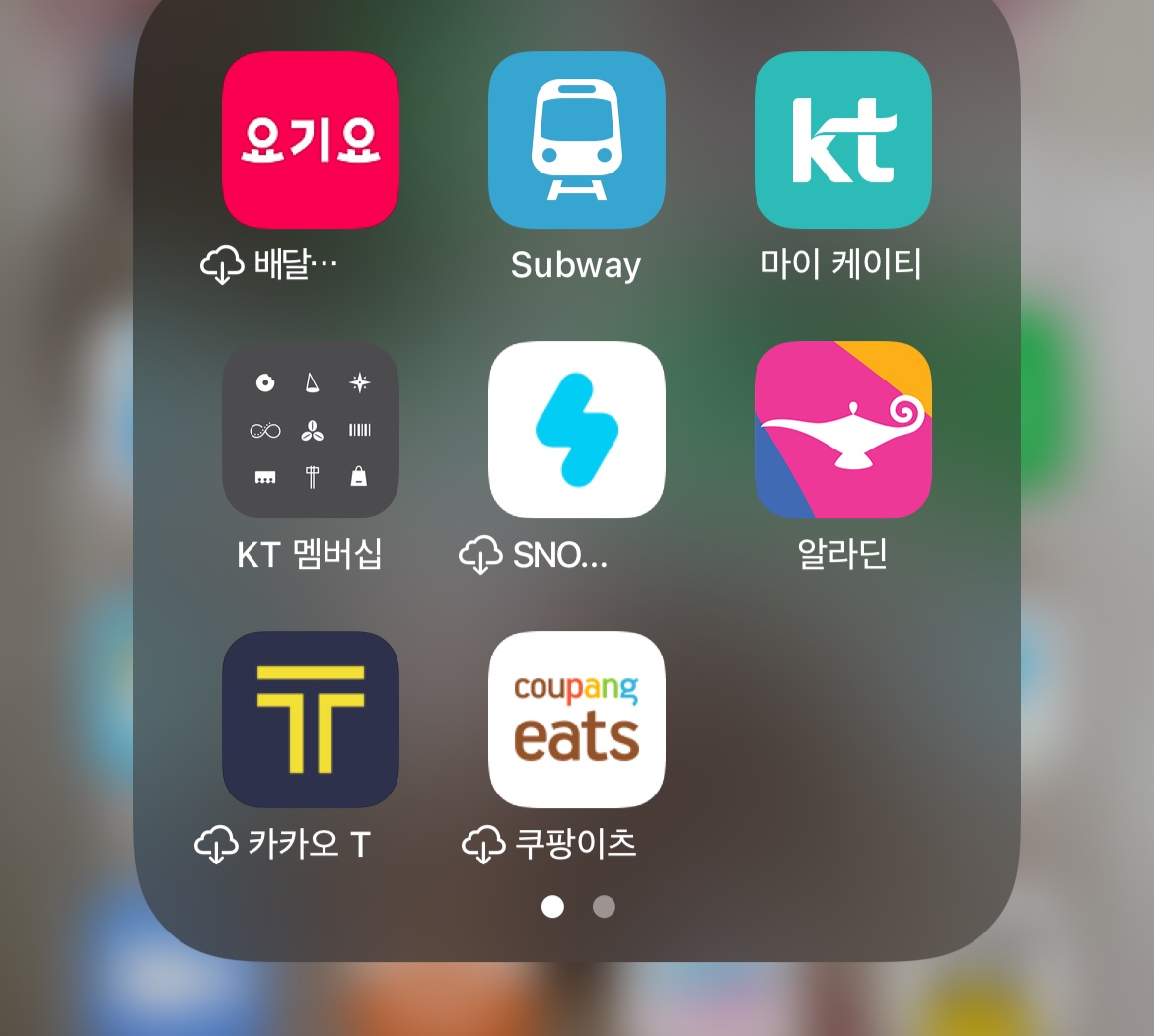 上段右と2段目左は「KT」という携帯会社で契約している方はぜひ。水色のアプリはデータの残量などを確認したり、契約をオンライン上で変更できます。黒い方の「KTメンバーシップ」は、KTを使っている人限定でサーティワンや映画のチケット等の割引券が毎月貰えます。韓国人たちも、サーティワンなどで使用しているのをよく見ました。
