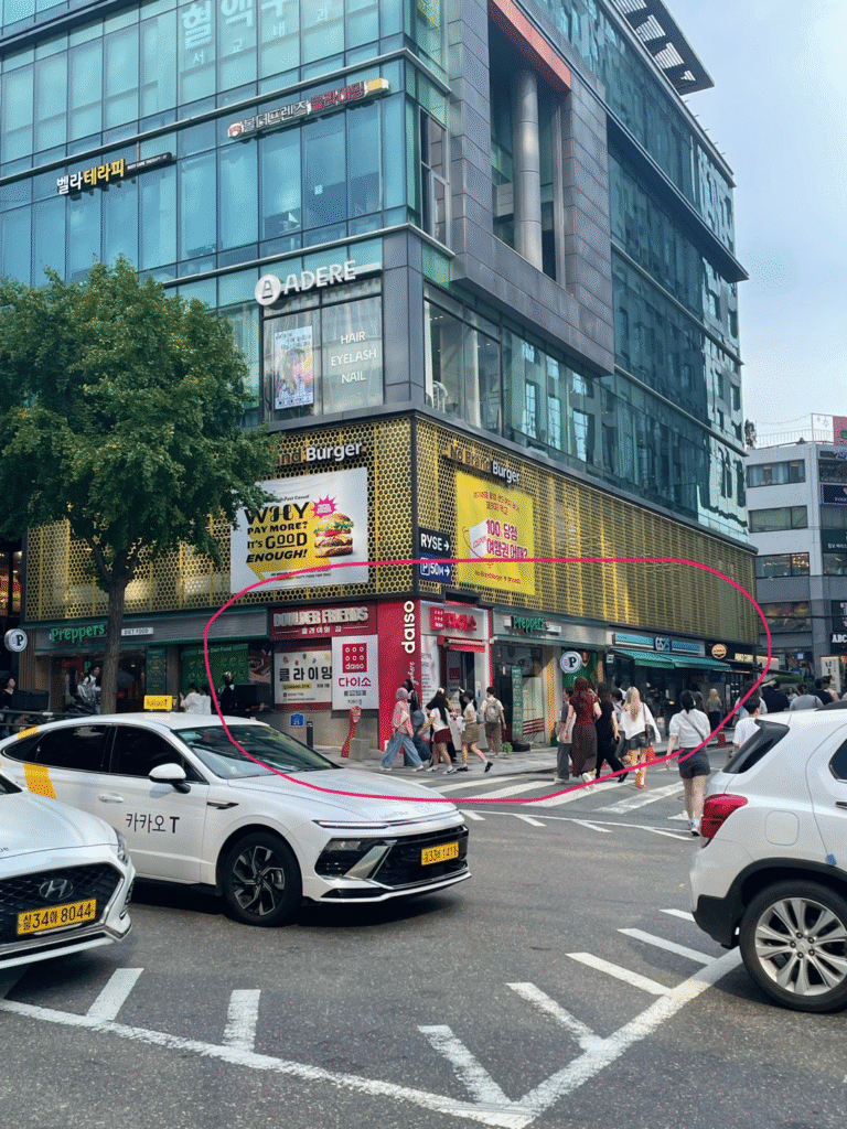 AKプラザというショッピングビルや「ホリデーインイクスプレスソウルホンデ」というホテルの近くです。