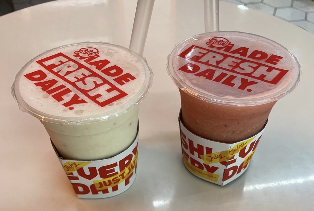 左側は「ココナッツバナナ」にしました。初めて飲んだのですが中にナタデココ?を小さく刻んだものも入っていて夏らしくて美味しかったです。バナナだしナタデココもあるので、わりとお腹にたまりました。