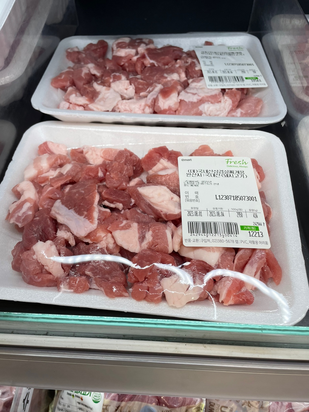 これは豚肉肩ロースで852gで20218ウォン(2200円)くらいですね。