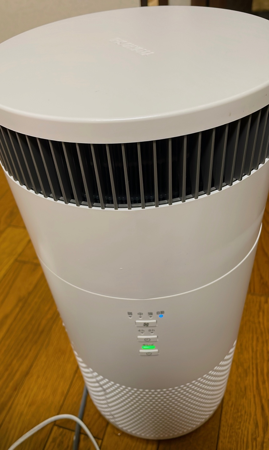 空気が汚れたか自動判断してくれ、汚れたら緑のランプが黄色や赤色に変わり、自動で強めて空気清浄し、綺麗になれば緑に戻って弱まります。咳すると黄色などに変わるので機能してくれていました。