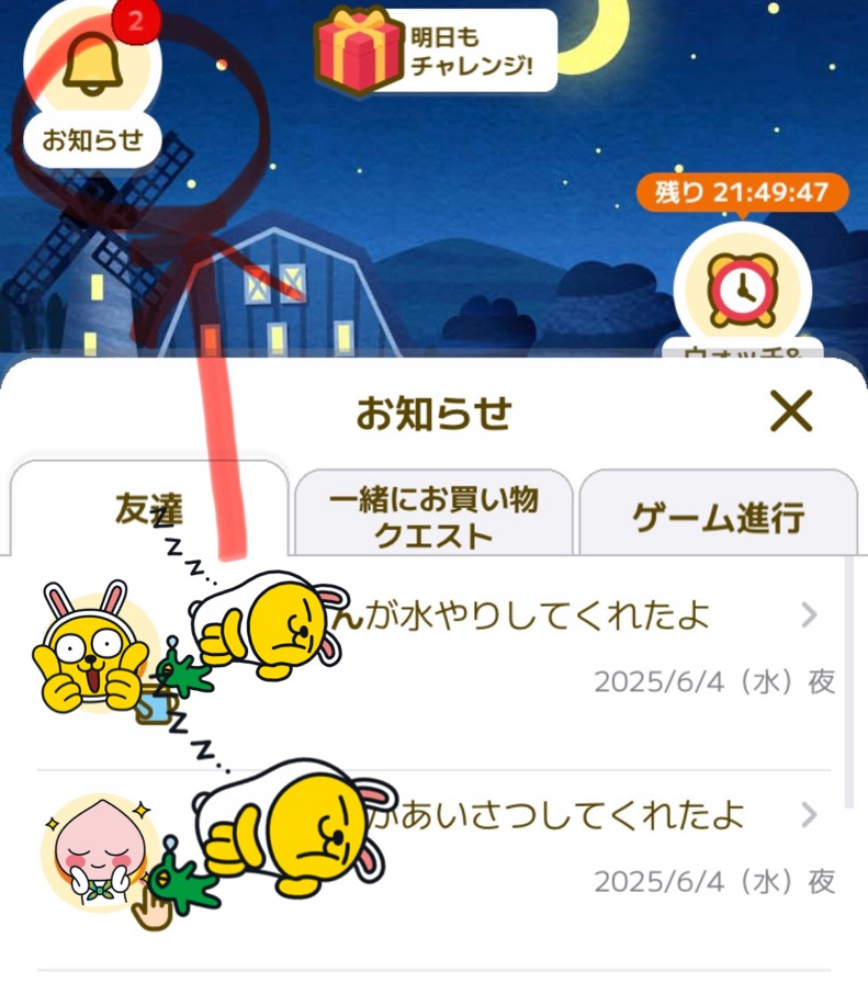 自分も、挨拶や水やりしてもらったのを知るのはアプリの「お知らせ欄」を開いた時だけ。