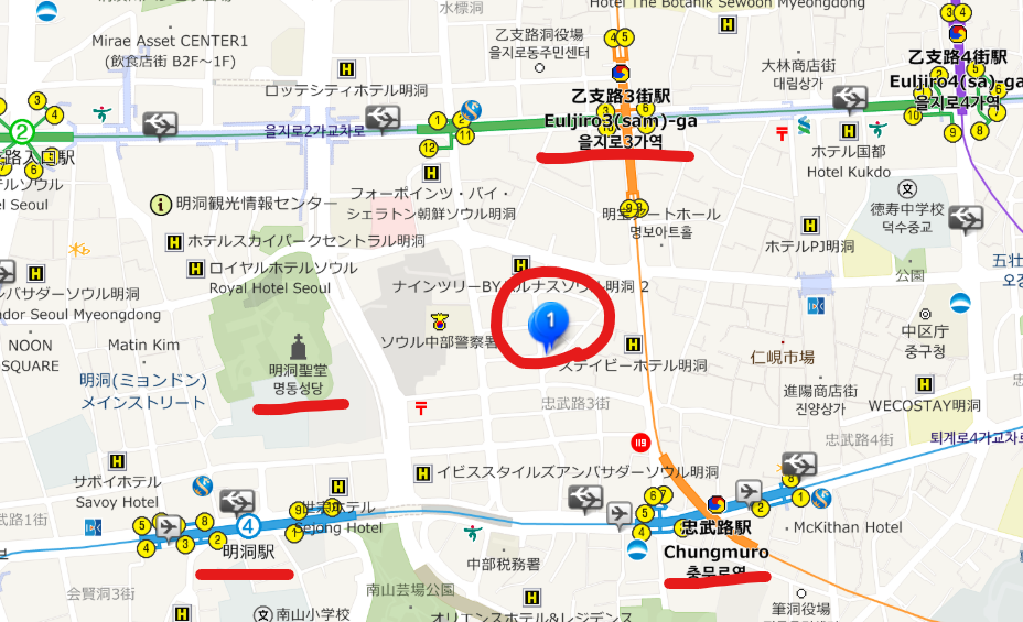 明洞からもアクセスできるのが良いですね。