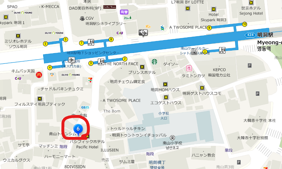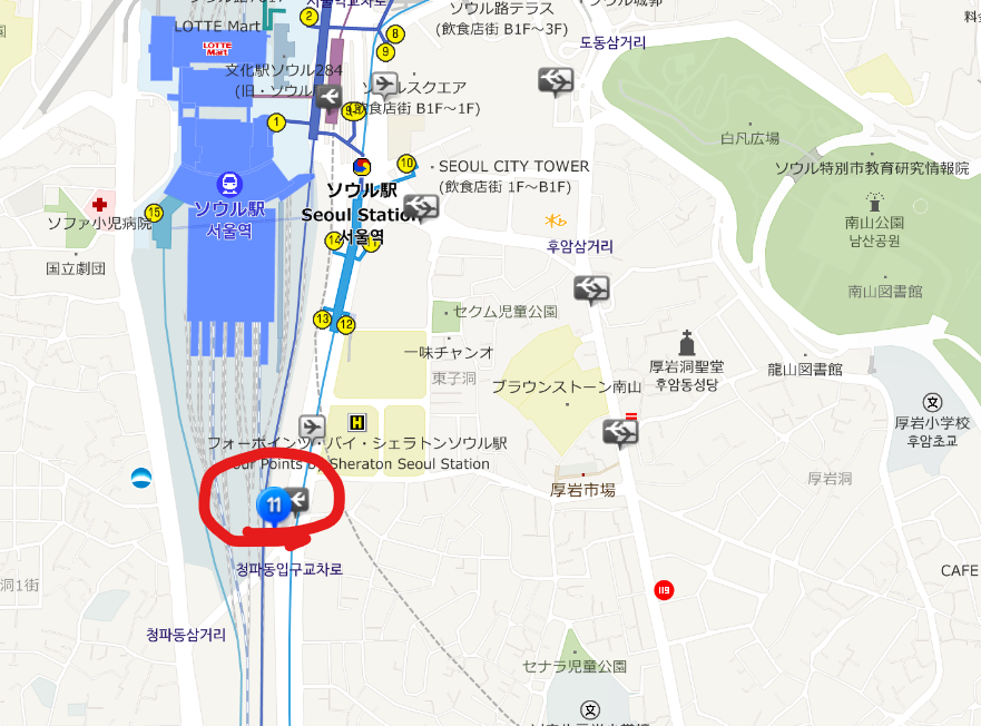 ソウル駅13番出口直進。ソウル駅から徒歩8分。