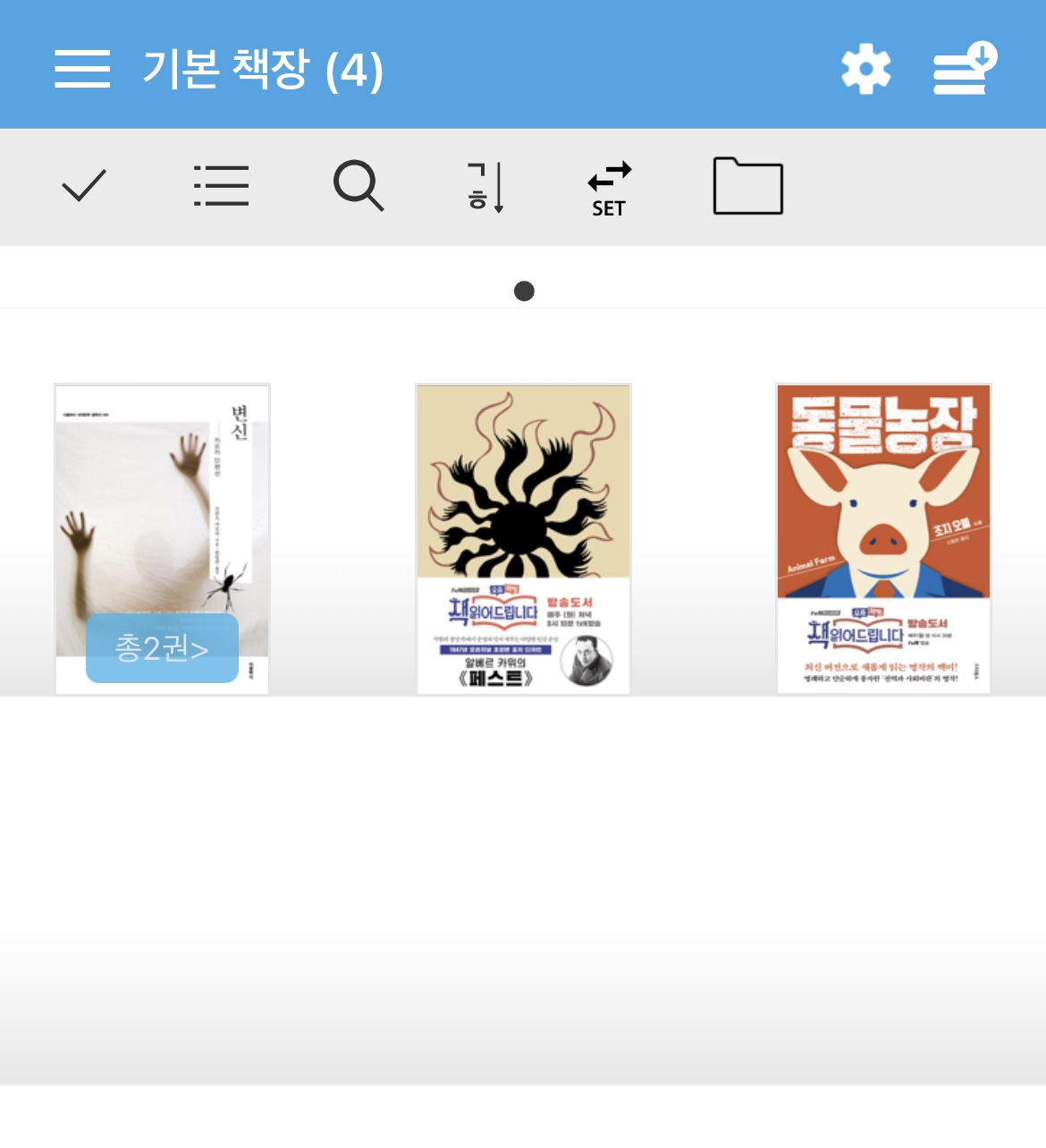 電子書籍閲覧ビューアーアプリ開くと、こんな感じで本棚みたいになってかっこいい。