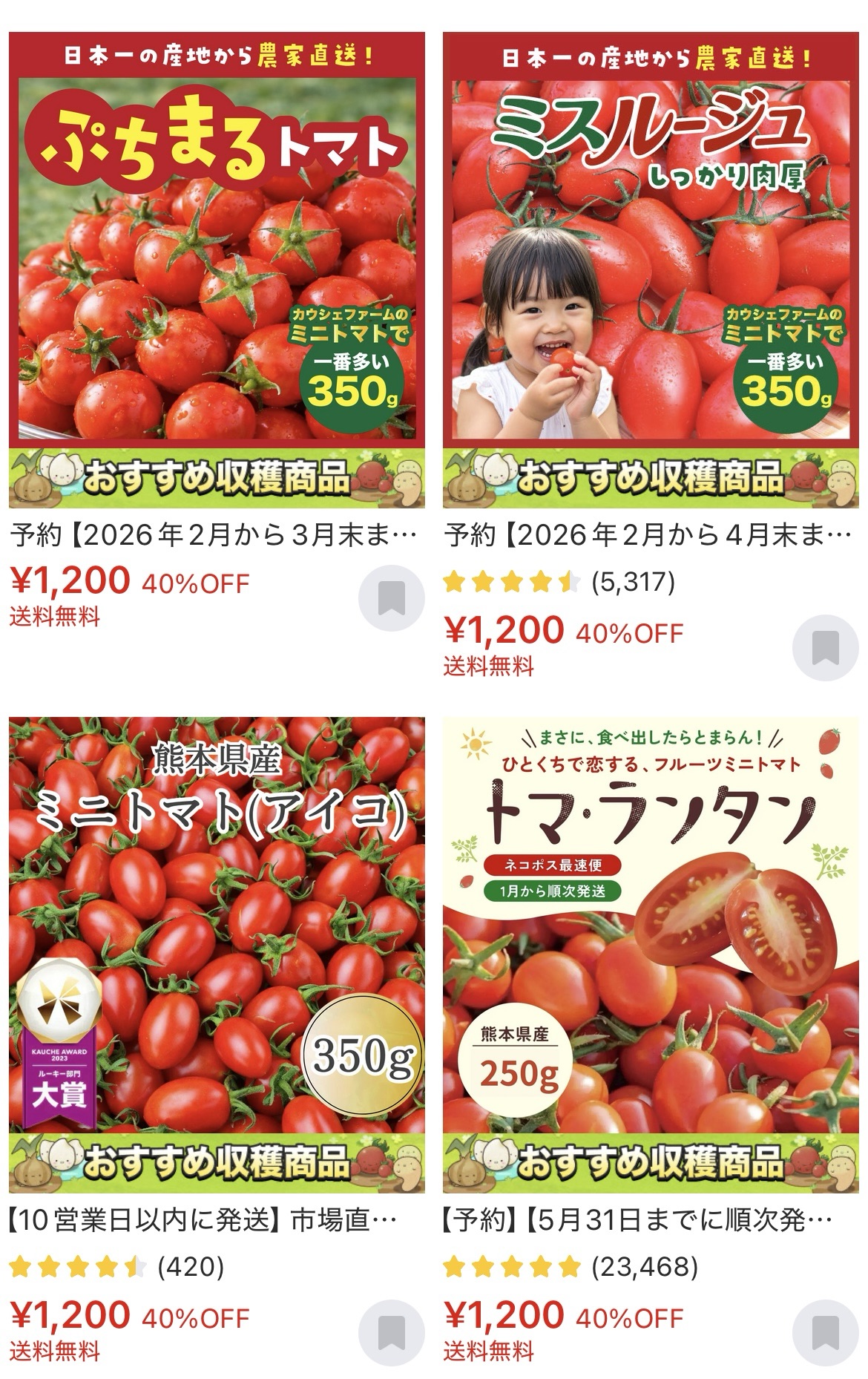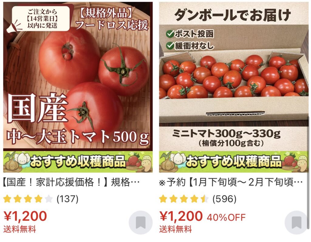 野菜だけでなくマスクやタオルなどの小物や、ラーメンなどの他の食品にも引き換えもできますが、今回はそれらは紹介せず、トマトなら引き換えられる本物のトマトのみというようにその野菜のみを紹介。