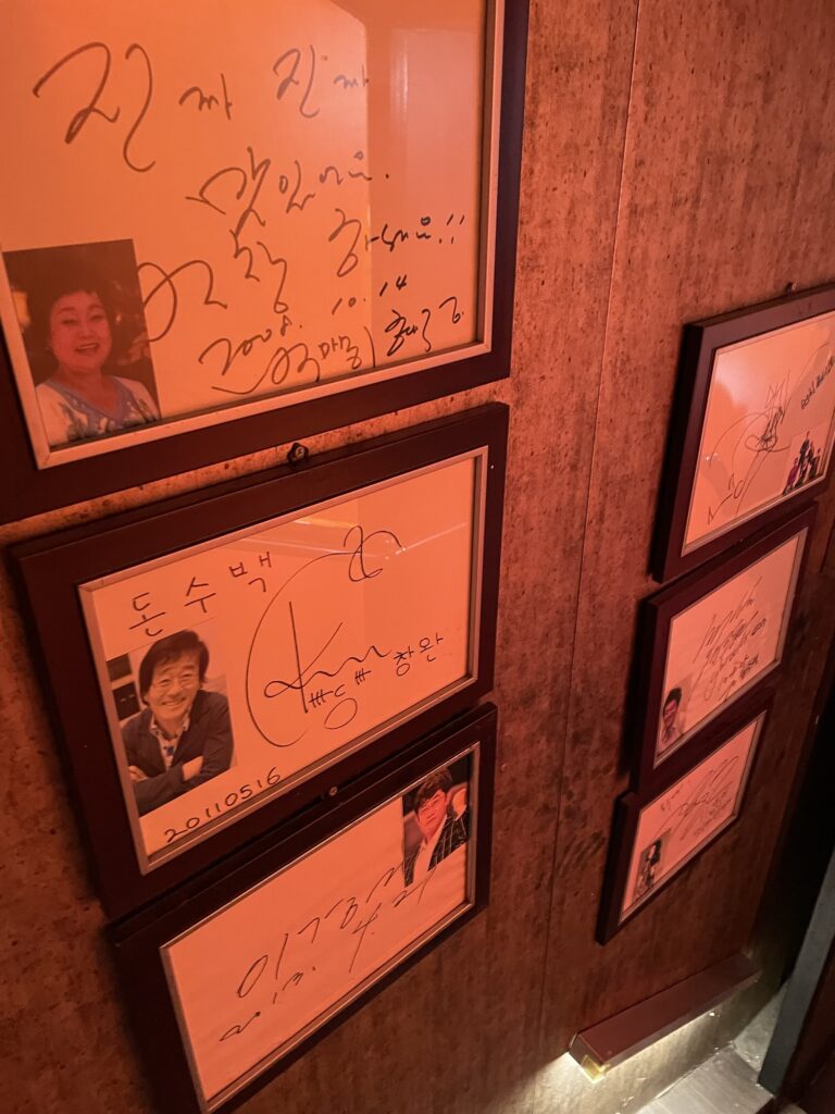 2階に上がる階段には韓国の芸能人のサインが多数。