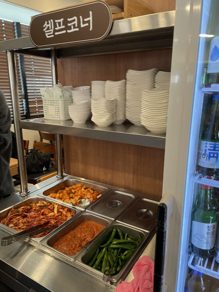 青唐辛子や味噌、キムチのおかわりはセルフコーナーから。