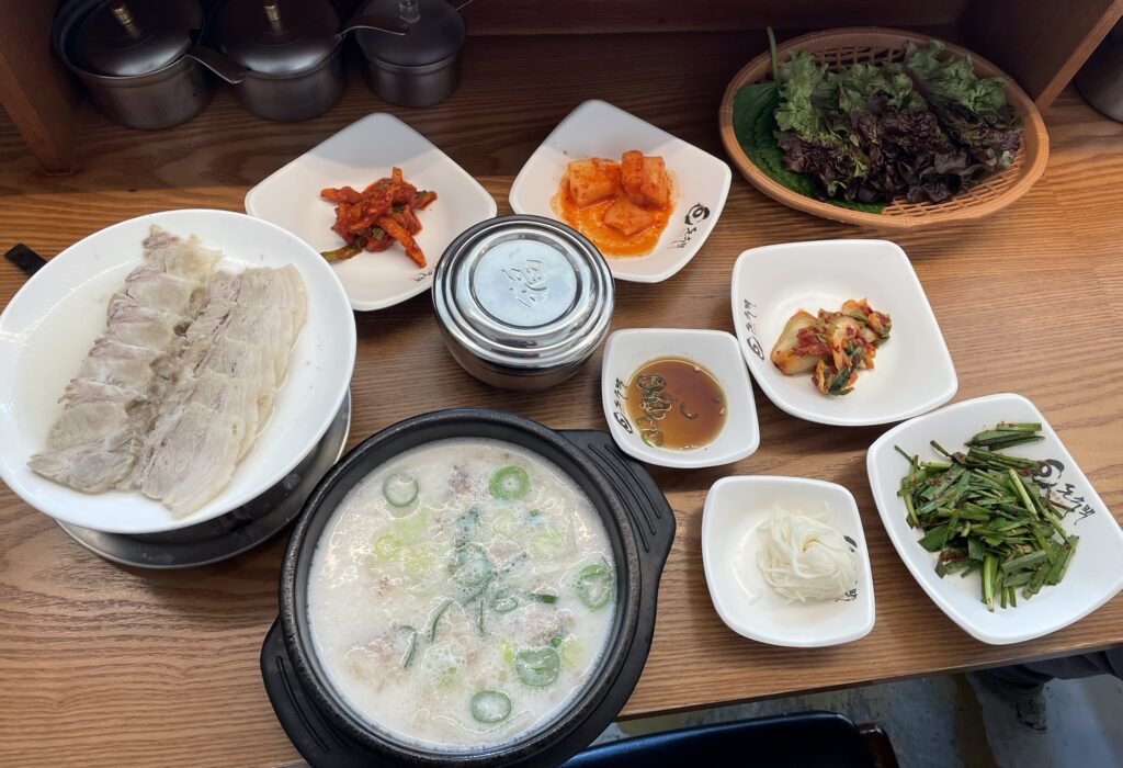 豚肉クッパと、スユク(煮豚)と、野菜やおかずのセットです。
