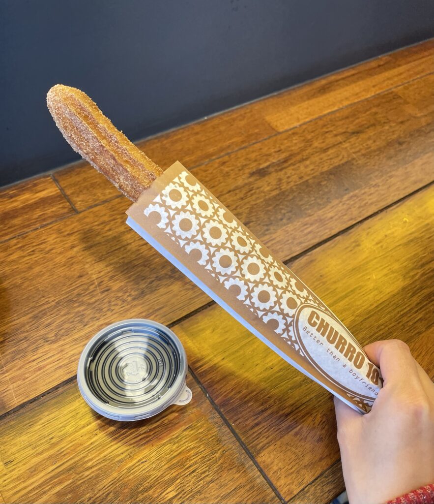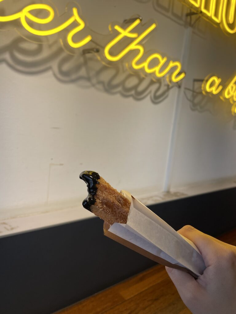 チュロスはサクサクおいしいです。揚げたてで熱い!