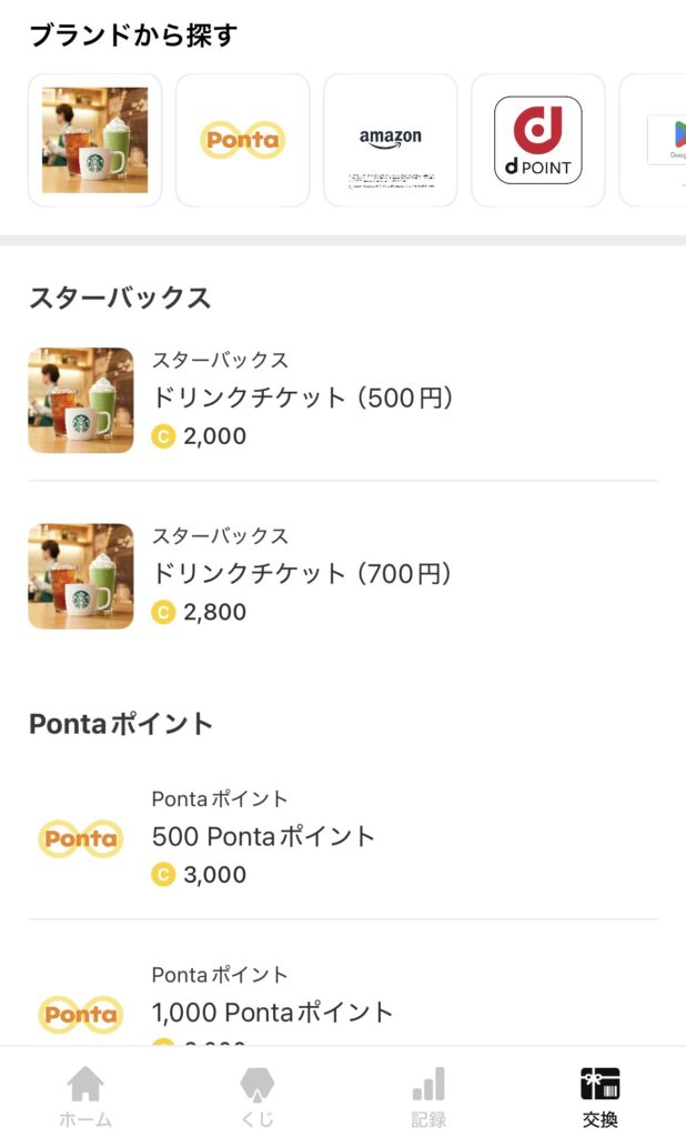 しかもキャッシュウォークは、食べ物やカフェ商品券にも引き換えられます。