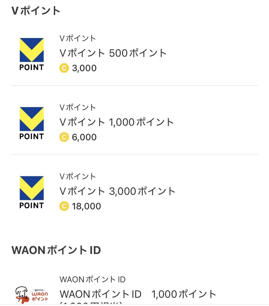 Ponta、Amazonギフトカード、dポイント、Vポイント、WAONポイントID、Googleplay、nanacoポイントなどに引き換え可能。