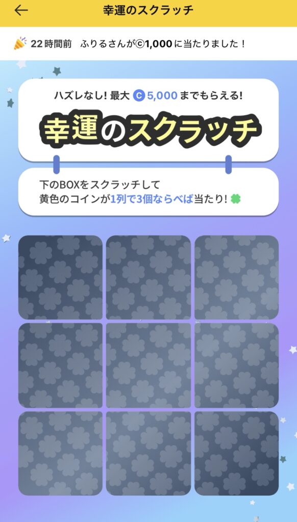 1日に9回ほど無料でスクラッチに挑戦できます。
